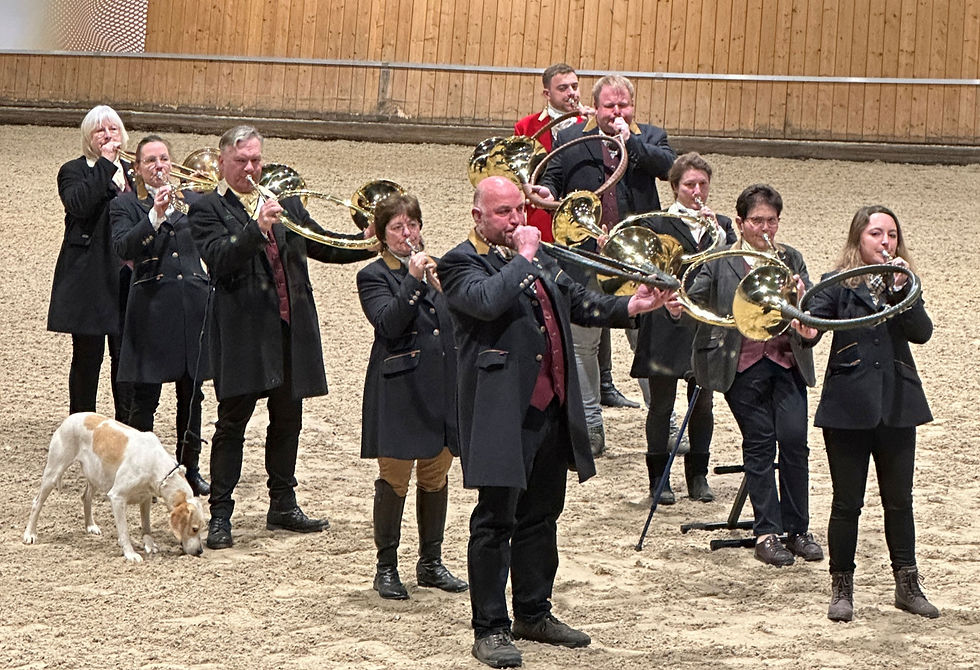 Mit diesem positiven Feedback starteten wir in den zweiten Tag in Aachen. Der Sonntag stand im Zeichen der Praxis. Die Jagdhornbläser der Rheinlandmeute eröffneten mit wunderschönen Klängen in der Albert-Vahle-Halle diesen Teil des Programms. Nach einer Präsentation der Vielseitigkeitsreiter unter Leitung von Jérôme Robiné hatte die Rheinlandmeute ihren großen Auftritt. Die Faszination für die Hunde und Pferde auf der Zuschauertribüne konnte man förmlich spüren.